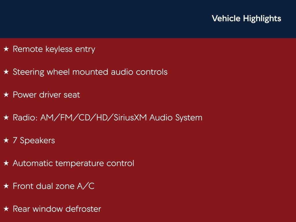 - Radio: AM/FM/CD/HD/SiriusXM Audio System