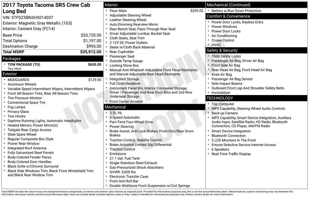 - Vehicle Name: Toyota Tacoma