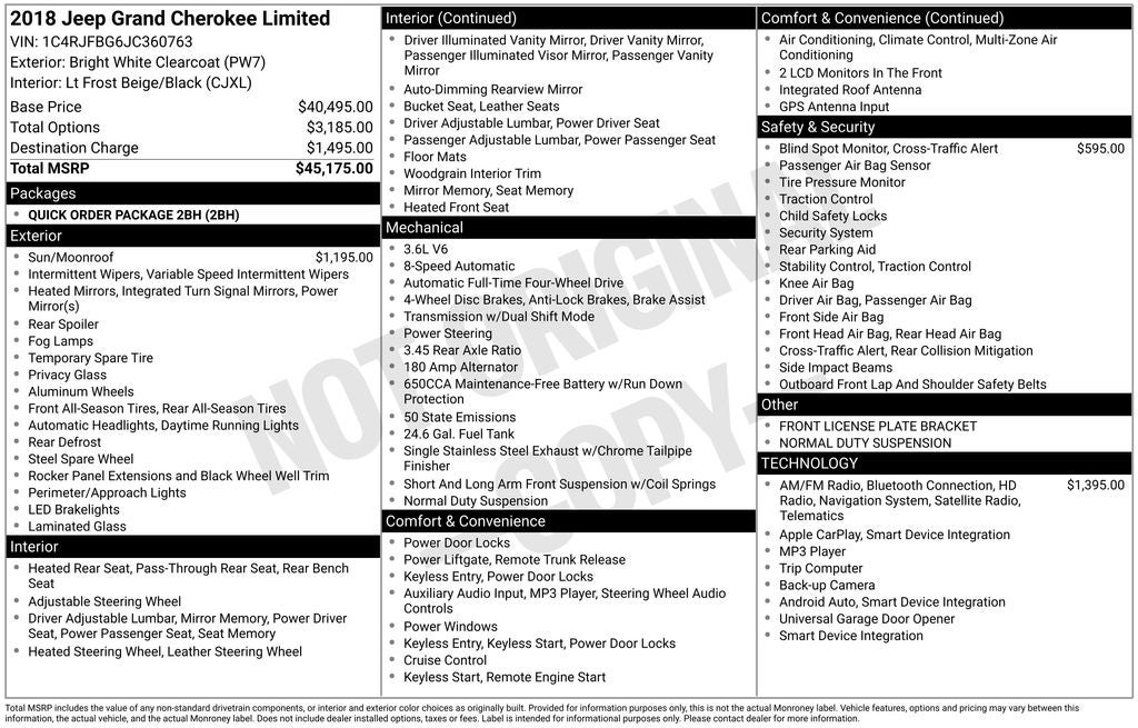 Bright White Clearcoat 2018 Jeep Grand Cherokee Limited 4WD 8-Speed Automatic 3.6L V6 24V VVT 4WD.