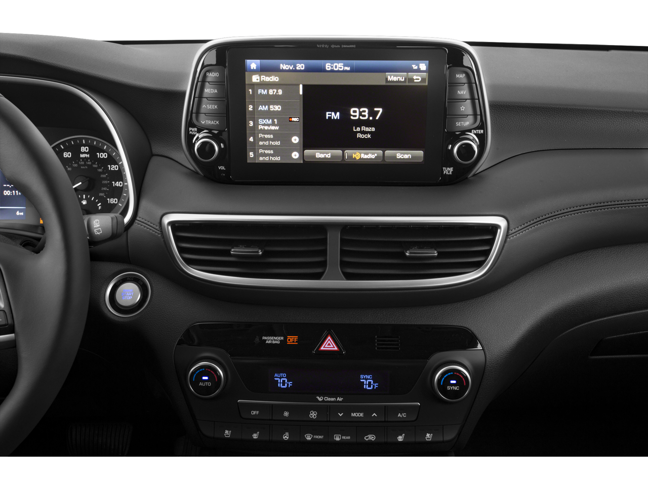 Step inside and experience the epitome of luxury with the Tucson's heated and ventilated leather-trimmed seats. The power driver's seat and heated steering wheel ensure you'll always be in the perfect position, while the split-folding rear seat offers versatile cargo space for all your adventures. The Apple CarPlay and Android Auto integration seamlessly connects your smartphone, keeping you entertained and connected.