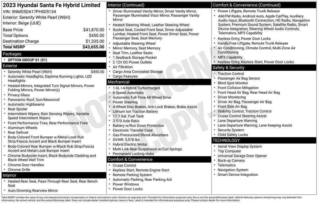 - Vehicle Name: Hyundai Santa Fe Hybrid
