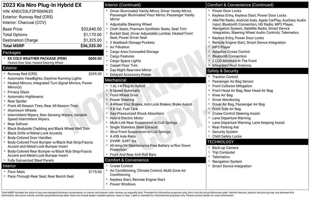 - Vehicle Name: Kia Niro Plug-In Hybrid