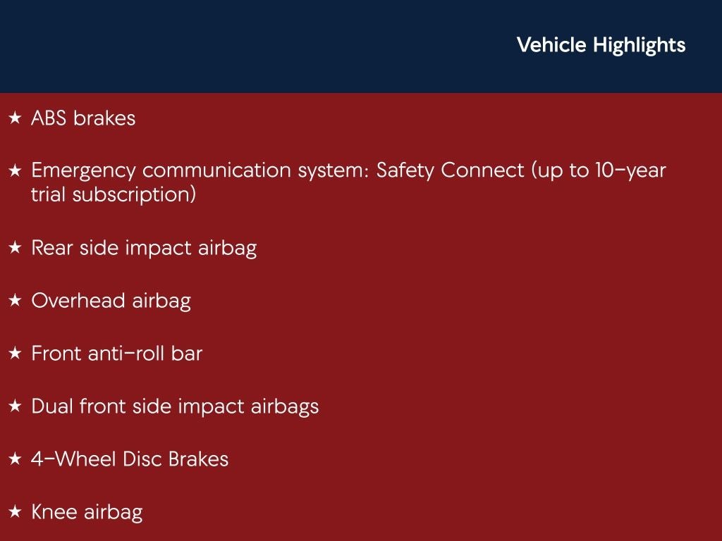 - Regenerative 4-Wheel Disc Brakes w/4-Wheel ABS, Front Vented Discs, Brake Assist, Hill Hold Control and Electric Parking Brake