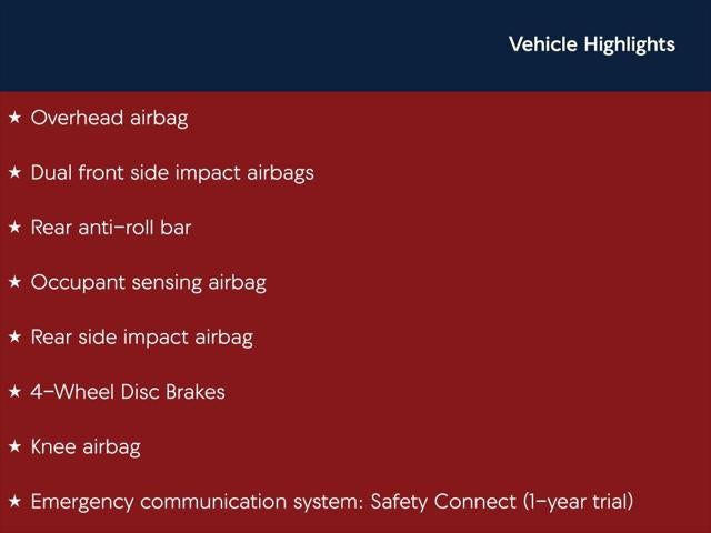 - Emergency SOS Capable Safety Connect (1-year trial) vehicle integrated emergency SOS system