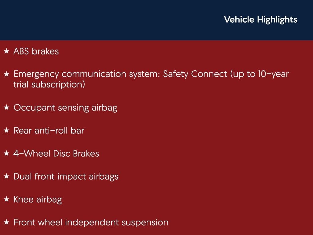 - Emergency SOS Capable Safety Connect (up to 10-year trial subscription) vehicle integrated emergency SOS system